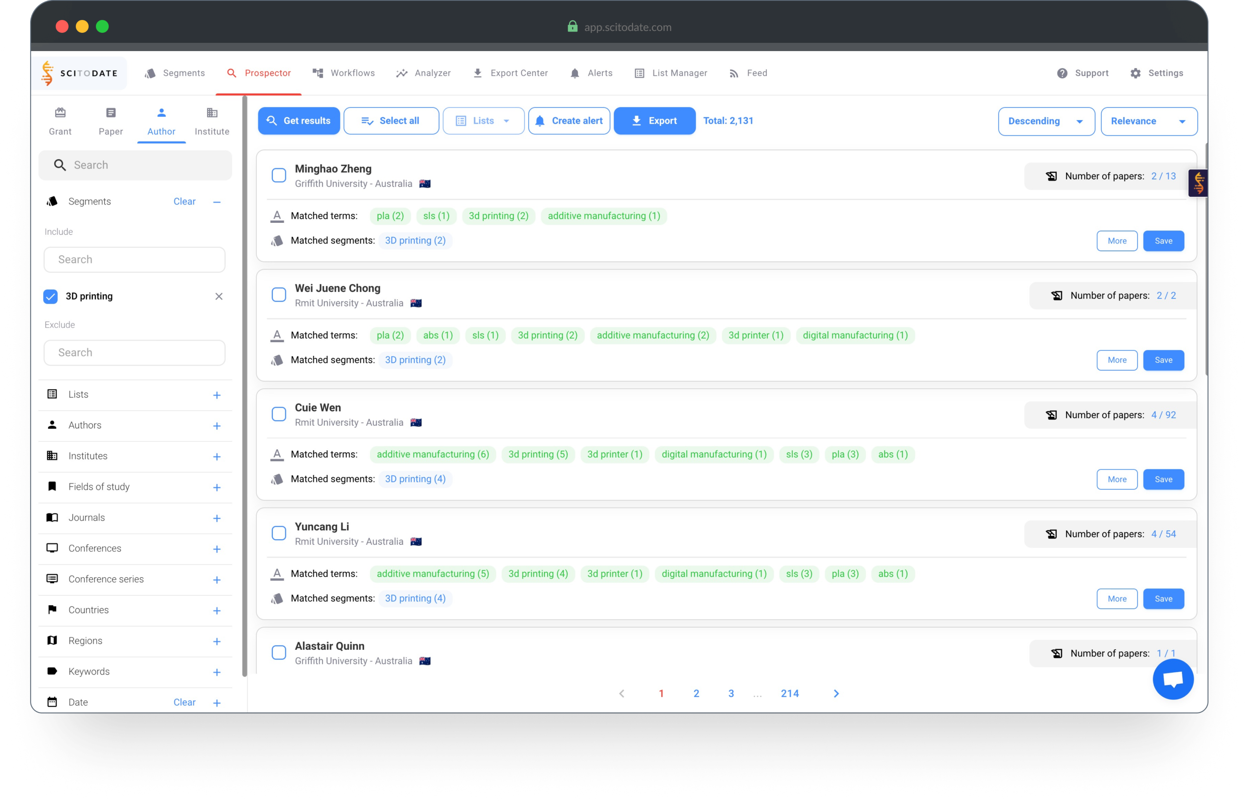 Platform for Marketing and Sales professionals. The tool enables you to analyze trends and find targeted leads within the scientific market.