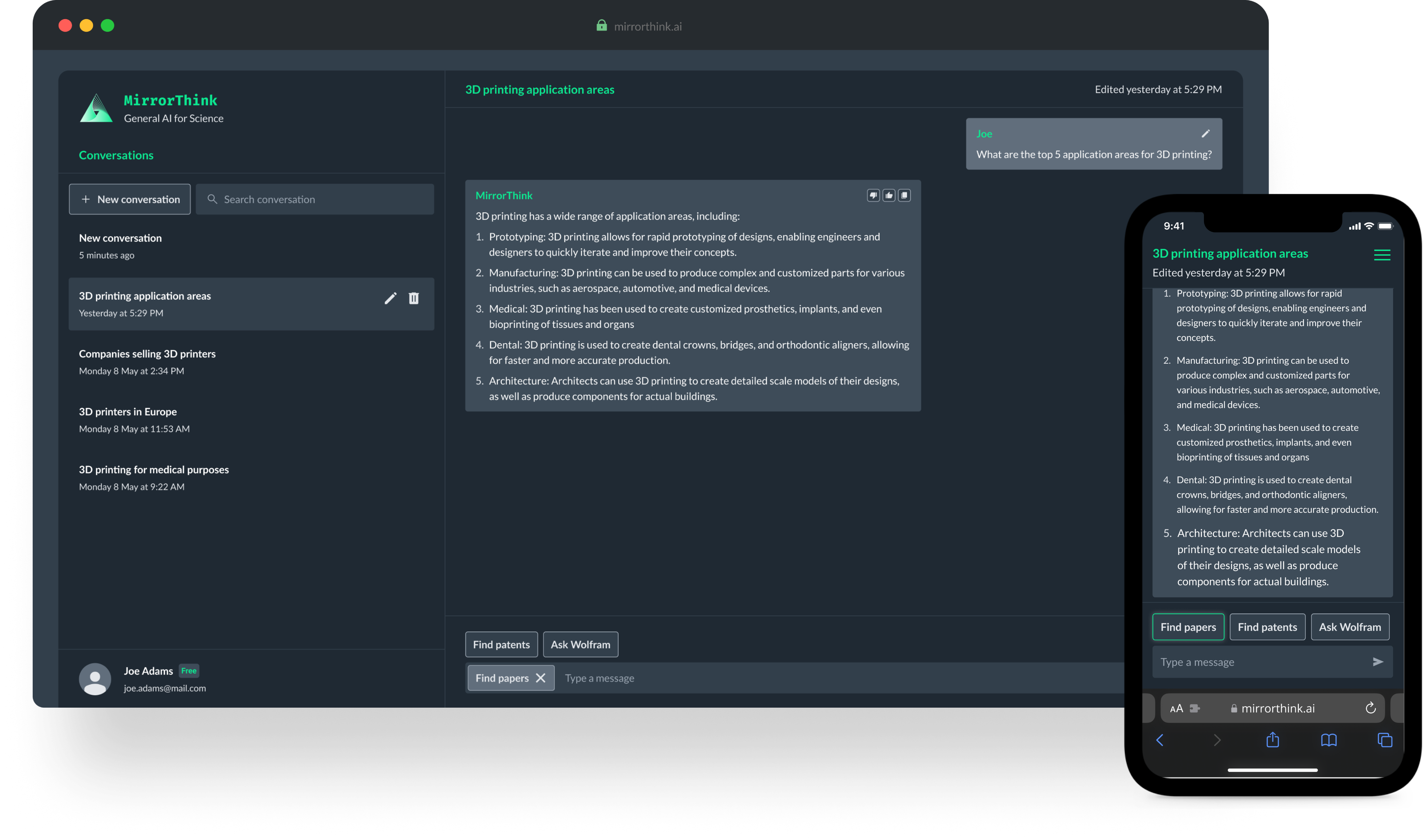 We are living in an amazing and ever-evolving time with incredible innovations such as AI. Within a team at Scitodate, we built MirrorThink that uses and empoweres GPT 4.0. MirrorThink is an AI tool that helps scientists and researchers with finding answers to their questions about scientific methods, research, papers, and related topics.